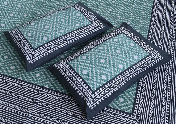 “Bring in the beauty, charm and tradition to your home with this everlasting beauty. Crafted by Indian Artisans who weave, print and bring this to life.Premium Double-Bed King Sized BedsheetSize – 100×108 inch approx.Fabric – Cotton1 Bedsheet 2 Pillow Covers.Message us directly or Whatsapp on 9034730050 / 9034960050”